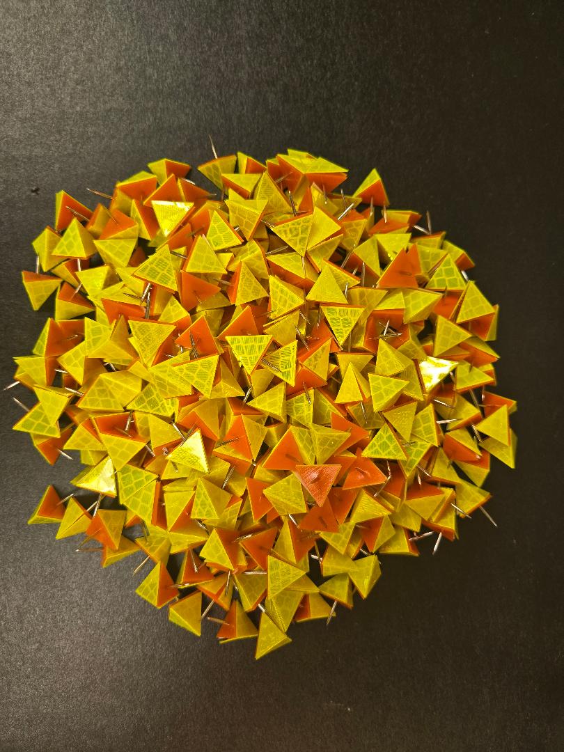 These are prototypes, reflectives are perfect.  Just applied to surplus base tacks for field testing.